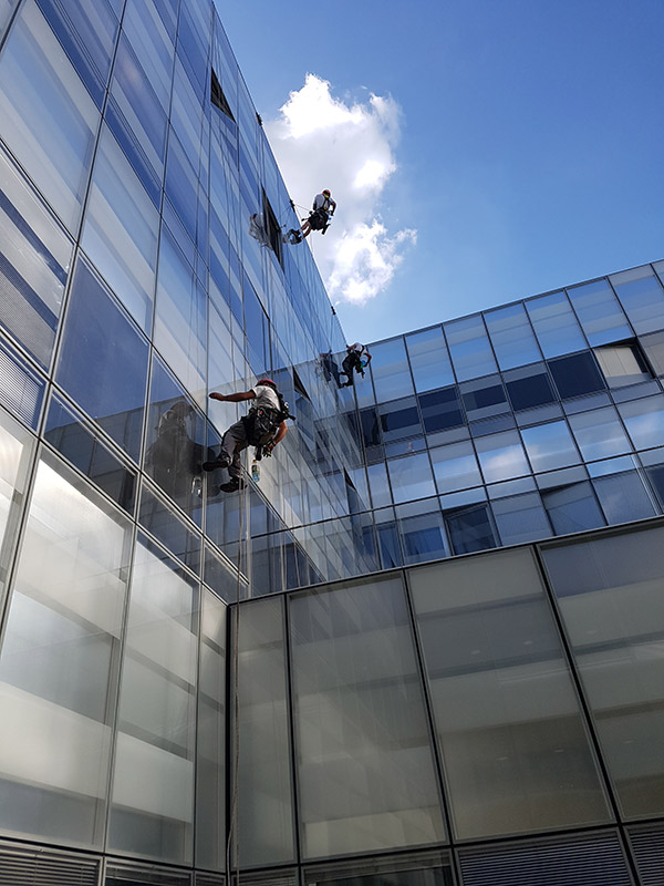 Le nettoyage en hauteur et / ou d’accès difficiles est une prestation réalisée par nos cordistes.