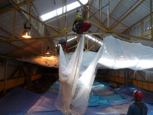 Il existe également plusieurs autres types de sécurité plutôt à l’usage des intervenants au sol, ou pour des raisons de santé environnementales. De ce fait, nous proposons en complément des ajouts sur les filets comme du pare-gravats, pare-poussières, ou des bâches de séparation extérieures ou encore du confinement en hauteur pour préparer aux désamiantages.
